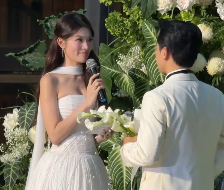 Hôm nay, trước tất cả mọi người, em hứa với anh rằng sẽ không chỉ yêu anh trong những ngày nắng đẹp mà cả ngày mưa bão. Em hứa sẽ học mẹ và má để nấu ăn ngon hơn. Em hứa sẽ lắng nghe, thấu hiểu để cùng anh lớn lên mỗi ngày, không phải để chúng ta hoàn hảo mà để chúng ta thêm yêu thương, gắn bó.