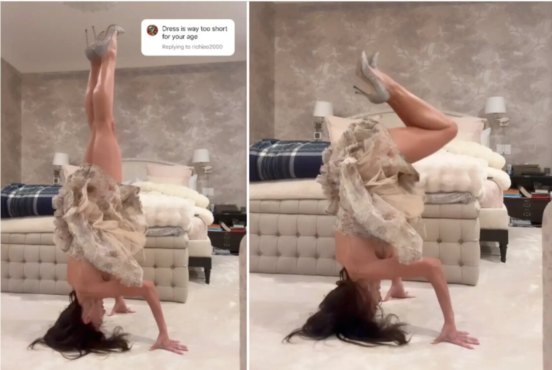 Ngày 3/12, Hilaria Baldwin (41 tuổi, Mỹ), HLV yoga sở hữu hàng triệu lượt theo dõi trên MXH, gây chú ý khi đăng tải clip thực hiện động tác trồng cây chuối với chiếc váy ngắn. Đây là hành động đáp trả của cô khi nhận về bình luận cho rằng những chiếc váy ngắn không phù hợp với độ tuổi.