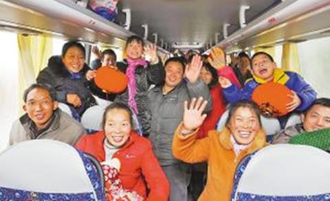 Chiều ngày 28/1, 56 công nhân ở Chiết Giang (Trung Quốc) hồ hởi ngồi trên chuyến xe về quê ăn Tết mà không phải mất một đồng nào.