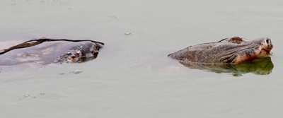 Cụ rùa “tọa thiền” trên mặt nước trưa 21.2 - Ảnh: Ngọc Thắng