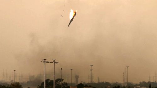 Ngày Thứ Bẩy, một máy bay chiến đấu bị bắn rơi ở vùng ngoại ô của Benghazi, đưa cột khói đen bay ngút trời. Một phóng viên AP đă nh́n thấy chiếc máy bay cháy và rơi xuống trong tiếng đạn đại pháo và tiếng súng.