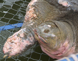 Cá thể rùa này được thành phố Hà Nội tổ chức bắt và đưa vào một bể đặc biệt dùng trong quá trình điều trị các vết thương. Rùa hồ Gươm gắn liền với truyền thuyết chống ngoại xâm của Việt Nam và vì thế luôn thu hút sự quan tâm rộng rãi của công chúng. Rùa này cũng được cho là một trong bốn cá thể hiếm còn sót lại trên thế giới và được kêu gọi cần bảo tồn.