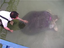Rùa đang trong bể "dưỡng thương" với số liệu chính thức được công bố là nặng 169kg, chiều dài mai 125cm, chiều dài cổ và đầu 60cm, chiều dài đuôi 34cm, chiều rộng mai chỗ lớn nhất là 99cm.