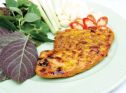 - Nướng thịt trên lửa lớn, thỉnh thoảng phết nước ướp lên thịt, trở đều thịt đến lúc chín vàng là được.