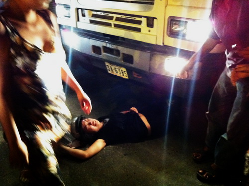 Vụ thoát chết diệu kỳ dưới gầm xe container