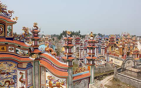 Khi kinh tế đă khá giả, do nguồn tiền từ nước Mỹ gửi về, phong trào xây lăng mộ trong ngôi làng biển này bỗng dưng trở nên bức bách.