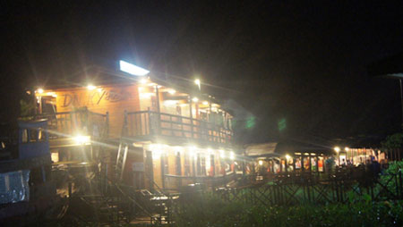Nhà hàng nổi 2 tầng đă nghiêng hẳn về một phía, khiến nước tràn nhanh vào tầng trệt và nhà hàng ch́m sâu trong nước trong ṿng chưa đến 10 phút, cầu thang bị nước phong tỏa.
