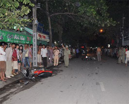 Hai thanh niên phóng xe bạt mạng trên đường, bất ngờ lạc tay lái đâm mạnh vào nhau, một "quái xế" ngă xuống đất chết tại chỗ, người c̣n lại trong t́nh trạng nguy kịch.