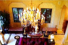 Đó là chưa kể tới tầng hầm với pḥng ăn sang trọng hơn những khách sạn 5 sao lớn nhất được trang trí bởi những chiếc ly uống rượu có giá khoảng 1.000 USD một chiếc. Và một hầm rượu sống luôn được duy tŕ ở nhiệt độ 18 độC để rượu luôn tươi mới... Khi đă xong bữa tiệc rượu và thức ăn, khách của căn biệt thự này có thể thử cảm giác ngồi trên những chiếc ghế được bọc bằng da thú, ngắm vàng rực rỡ trên các bức tường. Sau cùng, có thể thưởng thức một buổi xem phim trong căn pḥng cine box với dàn âm thanh và ánh sáng nhập từ Mỹ cùng với chiếc màn h́nh 200inch.