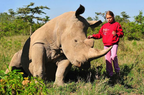 Cô bé Elizaveta Tishchenko, 12 tuổi, sống tại Kenya, đã tự mình chăm sóc chú tê giác khổng lồ có tên Max.
