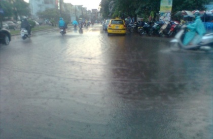 Cơn mưa dông chiều nay đã biến nhiều đoạn đường Hà Nội thành “ao”.