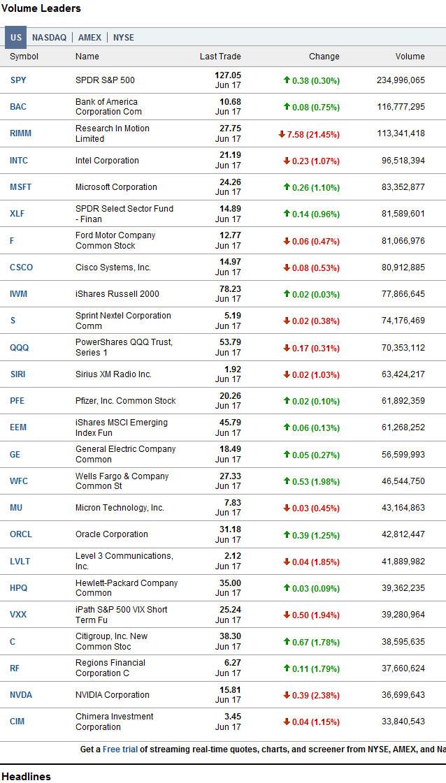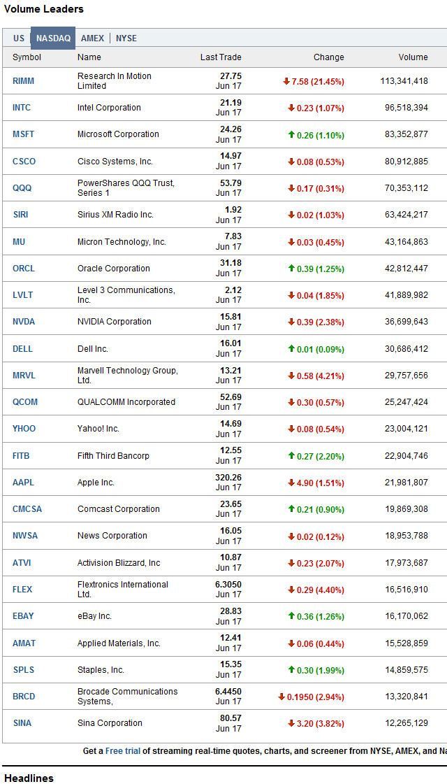 US Volume Leaders, NASDAQ Volume Leaders