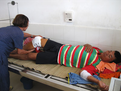 Chiều 28/6, thông tin từ Khoa Ngoại chấn thương (Bệnh viện Đa khoa tỉnh Phú Yên) cho biết: Đến 15h cùng ngày, bệnh nhân Ngô Quang Dũng (40 tuổi) ở khu phố Bạch Đằng phường 6, TP Tuy Hòa (Phú Yên) vẫn chưa hồi phục sức khỏe, lâu lâu vết thương lại rỉ máu làm anh đau đớn.