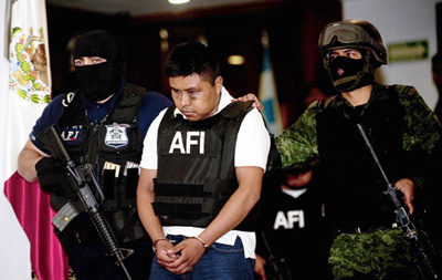 Một thành viên băng Los Zetas bị cảnh sát Mexico bắt giữ. (H́nh: Yuri Cortez/AFP/Getty Images)