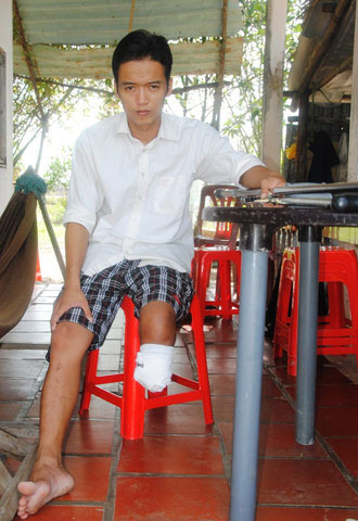 Anh Triều mất chân chỉ sau một cú ngă đơn giản. Ảnh: Thiên Phước.