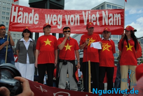 Cuộc biểu tình “Vì Hòa Bình Biển Đông” được tổ chức từ 13 giờ 00 đến 15 giờ 30 ngày 09.07.2011 tại Quảng trường Potsdamer Platz, Trung tâm mới của Thủ đô Berlin, CHLB Đức đã kết thúc thắng lợi! Trên một ngàn hai trăm người gồm người Việt Nam, người gốc Việt cùng vợ chồng, dâu rể là người Đức, các bạn người Đức và bạn bè quốc tế yêu mến Việt Nam đã sát vai nhau cùng phản đối chính sách bành trướng và các hành động xâm lấn biển đảo Việt Nam của nhà cầm quyền Trung Quốc.