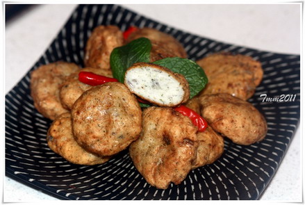 Dùng tay vo cá thành viên tròn rồi ấn dẹp thành hình bánh.