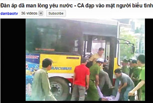 Hà Nội, 07-17-2011: Công an đánh đập người dân tham gia cuộc biểu t́nh bất bạo động chống Trung Quốc. RFA screen capture