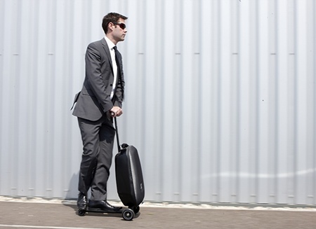 Nếu quên gọi một chiếc taxi, bây giờ bạn có thể biến chiếc valy hành lư của ḿnh thành “xe tay ga” để đi đến sân bay.