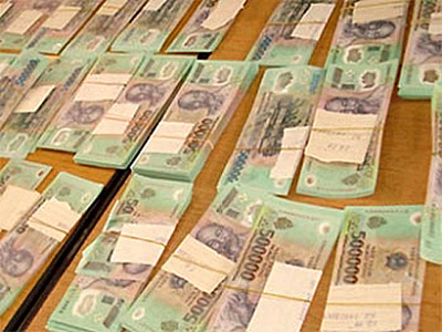 Tiền xếp đống tại chợ tiền biên giới Việt-Trung. (H́nh: báo Tiền Phong)