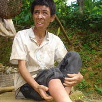 Cách nhà Tâm chỉ mấy bước chân là gia đ́nh ông Xa Văn Mính, bản Nà Mười. Khi chúng tôi đến, anh Xa Văn Nam con trai thứ 3 của ông Mính đang bổ củi. Anh nhấc từng nhát ŕu khó nhọc. Nam bị bệnh nhẹ hơn nhưng khuôn mặt anh cũng bị biến dạng bởi con "ma ngứa" đă hành hạ suốt mấy chục năm qua. Người anh của Nam là Xa Văn Mẫn cũng bị bệnh tương tự.
