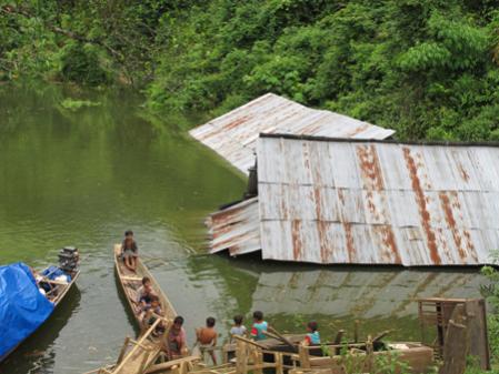 Vậy nhưng cái “văn minh” duy nhất nơi núi rừng đă bị nước ḷng hồ nhấn ch́m trong tuần vừa qua. Giờ c̣n lại là nước mênh mông ôm lọt ngôi trường, chỉ c̣n thấy mái tôn xộc xệch nhô lên trong biển nước. Hay tin trường ngập, công an, dân quân xă đă được điều về để cứu trường nhưng sức người có hạn, chỉ cứu được mấy bộ bàn ghế. Toàn bộ dụng cụ, sách vở chuẩn bị cho năm học mới chẳng thể cứu nổi, gần hai chục con người đứng nh́n trân trân vào mái của ngôi trường rồi khóc.