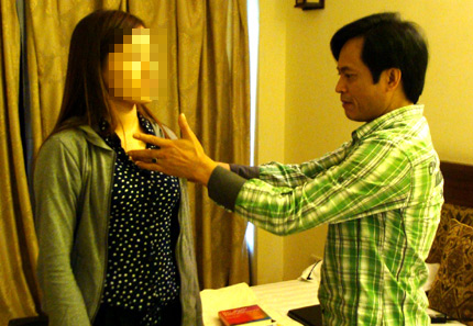 Thạc sĩ Nguyễn Mạnh Quân thôi miên để giúp bệnh nhân có giấc ngủ sâu.