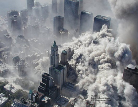 Trung tâm Thương mại Quốc tế sụp đổ sau khi bị tấn công ngày 11/9/2001. Ảnh: ABC News.
