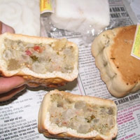 Theo lời giới thiệu của một chủ đại lư bánh Trung thu, chúng tôi t́m đến cơ sở sản xuất bánh Trung thu Ngọc Khánh của một người đàn ông có tên là Vinh "rắn". Cơ sở sản xuất Ngọc Khánh có khoảng hơn 50 công nhân đang h́ hục quấy bột, nặn bánh, đóng bao. Điều ngạc nhiên là tất thảy công nhân đều không dùng găng tay mà cứ tay trần nhào, khuấy, nặn. Phía bên trong ngôi nhà, gần nhà vệ sinh có một chiếc thùng hoen gỉ, nơi hai người phụ nữ mồ hôi nhễ nhại đổ nguyên liệu, rồi quấy đều. Khi quấy xong, một nhân công khác cầm chiếc chậu cáu bẩn, màu vàng nhơ vục một chậu đầy rồi đem ra góc nhà nơi 4 - 5 nhân công khác đang chờ sẵn. Đám nhân công khác hối hả cấu từng miếng bột, vo tṛn, rồi nhét một cục nhân màu xanh đen làm bằng bột đậu vào giữa. Mọi công đoạn diễn ra nhanh chóng, khẩn trương để "chạy đua" với thời gian. Ngay lối vào xưởng bánh, chúng tôi đă ngộp thở bởi cái mùi chua gắt từ nhân bánh quyện với mùi nước thải. Rác thải vương văi khắp nơi. V́ thế mà ruồi nhặng phát triển đến cả ngàn con. Chúng có ở khắp nơi. Một mẻ bánh vừa được ra ḷ chưa kịp cất đă bị đám ruồi như những hạt đậu đen bâu kín.