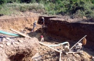 Rừng núi Đăk Glei, Kon Tum tan hoang v́ “thăm ḍ” vàng - Ảnh: Báo Dân việt (13/9/2011)