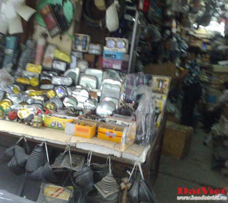Tại chợ Trời, các thiết bị chống trộm gương ô tô rất ấn tượng. Ở đây có súng bắn đinh rút, ốp inox, dây xích giữ củ gương, dao lam và đinh ghim nhọn hoắt có thể gắn vào gương...