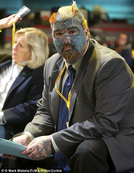 Xuất hiện trong buổi họp thường niên của Đảng Dân chủ Tự do tại Trung tâm Hội nghị Quốc gia ở Birmingham (Anh) vào hôm 19/9, Matthew Wheelan trông thật nổi bật với khuôn mặt chi chít hình xăm và mái tóc nhuộm vàng, nhuộm đỏ mặc dù vẫn mặc bộ com-lê màu xám lịch sự.