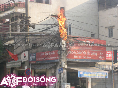 Một vụ cháy cột điện do dây cáp điện chập vào nhau trên phố Hạ Đ́nh (Thanh Xuân) vào cuối năm 2010.