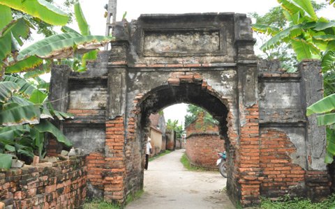 Cuộc sống với biết bao đổi thay nhưng ở hai ngôi làng Nga Trại và Đông Lâm (xă Hương Lâm, Hiệp Ḥa, Bắc Giang), nét cổ kính và thâm trầm, vẻ đẹp đặc trưng của quê hương Kinh Bắc xưa vẫn được lưu giữ. Không chỉ là giá trị vật chất mà nơi đây c̣n ǵn giữ những nét đẹp truyền thống của ông cha tự bao đời - (Trong ảnh: Cổng làng Nga Trại)