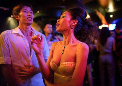Hình chụp trong một vũ trường ở Sài Gòn. Vũ trường, bar, trung tâm mua sắm... là những nơi nhiều Việt kiều khi về Việt Nam hay lui tới và cũng gặp nhiều “cạm bẫy.” (Hình: Paula Bronstein/Getty Images)