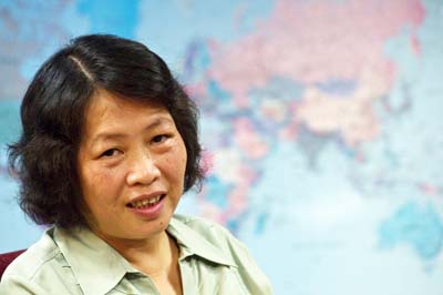 Nhà văn Trần Khải Thanh Thủy trong một cuộc phỏng vấn của AFP tại Washington hôm 12 tháng 7, ít ngày sau khi bà đến Hoa Kỳ. (Hình: NICHOLAS KAMM/AFP/Getty Images)