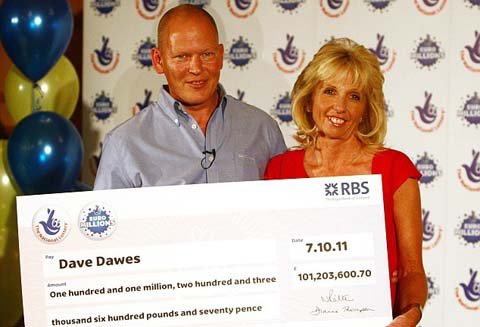 Dave Dawes (47 tuổi), một quản đốc và vợ anh Angela (43 tuổi), một tình nguyện viên Quỹ trái tim nước Anh là người chiến thắng giải thưởng xổ số nhà nước trị giá 101 bảng Anh (khoảng 157 triệu USD) vào thứ Sáu tuần trước.