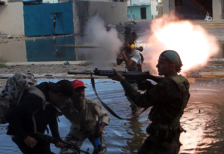 Lực lượng NTC giao chiến với những phần tử trung thành với ông Gadhafi tại Sirte, ngày 15/10.