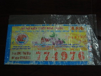 Tại buổi họp báo, ông Trương Tấn Tài, chủ nhân tờ vé số kư hiệu Z9K1, số 774976 (phát hành và mở thưởng ngày 3/9), trúng giải độc đắc 1,5 tỷ đồng kể lại: Ngày 3/9, ông có mua 3 tờ vé số của Công ty xổ số B́nh Phước nhưng bị mưa làm ướt, rồi lại nhúng vào thau giặt nên ông đã dùng nồi cơm điện hong khô sau đó là phẳng bằng bàn ủi.