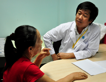 Bệnh nhân Nguyễn Thị Phượng đang được bác sĩ thăm khám bệnh. Ảnh: Thiên Chương