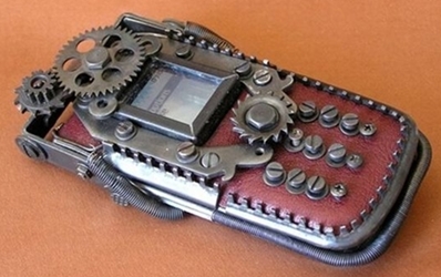 Thú vị hơn, bạn sẽ thực hiện cuộc gọi bằng chiếc thẻ đục lỗ sử dụng mã nhị phân, một trong những phát minh 2-Tek kinh điển. Người hâm mộ Steampunk chắc hẳn rất hân hoan với món đồ này. Và biết đâu, nhà mạng sẽ thiết kế thẻ đục lỗ thay cho simcard thì sao nhỉ? 2. Steampunk kiểu Nga Món quà xa xỉ của một ông bố người Nga dành tặng con gái mình. Chiếc điện thoại Steampunk được làm từ kim loại quý. Trông nó chẳng khác gì khối động cơ mạnh mẽ, bao gồm cả bu lông, đai ốc và những vòng bi cỡ lớn trên bàn phím.