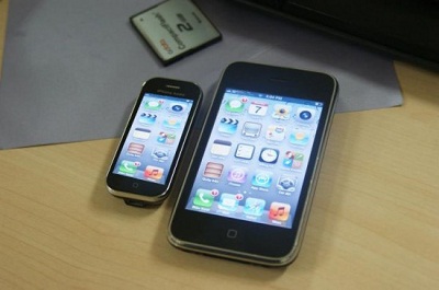 Bức hình xuất hiện trên Facebook của thành viên iPh, máy có thiết kế khá nhỏ màn hình khoảng 1,5 inch, hiển thị khá đầy đủ những icon menu quen thuộc của iOS. Ngoại hình cho thấy thiết bị như 1 iPhone 3GS thu nhỏ, phím home vẫn có trên sản phẩm.