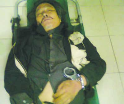 Ông Trịnh Xuân Tùng được đưa vào cấp cứu trong bệnh viện khi tay vẫn bị c̣ng, sau đó qua đời hôm 8 tháng 3, 2011. (H́nh: Dân Trí)