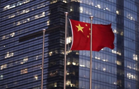 Quốc kỳ Trung Quốc tại một ṭa nhà thuộc khu trung tâm tài chính Phố Đông, Thượng Hải. Giới đầu tư đă không c̣n đặt cược “chắc như đinh đóng cột” vào sự tăng giá của đồng Nhân dân tệ nữa - Ảnh: Reuters.