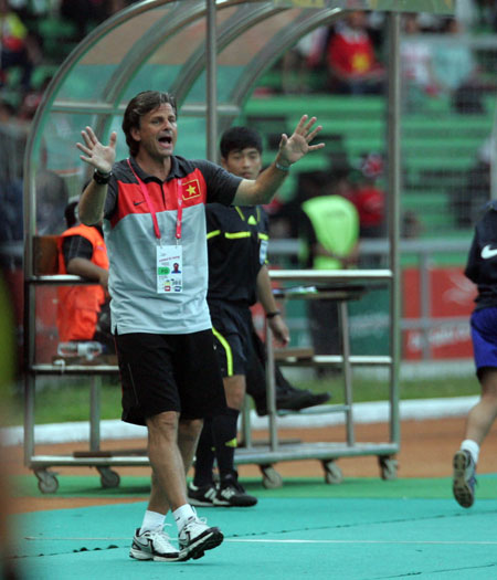 “Những bài tập và chiến thuật thi đấu của HLV Falko Goetz đều lạ lẫm và vô tác dụng v́ không thích hợp với cầu thủ Việt Nam. Tập luyện không hiệu quả, dĩ nhiên các cầu thủ chơi bế tắc và mất phương hướng tại SEA Games 26. Không chỉ thiếu thực tế, ông Falko Goetz c̣n tỏ ra rất kém khi đối phó với các t́nh huống thi đấu. Phần lớn các trợ lư HLV người Việt đều nh́n ra những hạn chế này. Chúng tôi có góp ư nhưng… Mỗi HLV đều có phong cách và phương pháp riêng, và họ phải chịu trách nhiệm về những quyết định của ḿnh”, vị trợ lư HLV này cho biết.