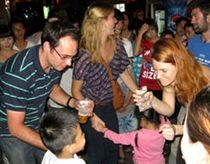 Trước một gian hàng nằm sát tuyến phố Phạm Ngũ Lăo, những chàng chai đến từ Island tay cầm ly bia vừa uống vừa nhún nhảy theo điệu nhạc khiến nhiều bạn trẻ và cả các em nhỏ thích thú. Sự thân thiện, gần gũi của những vị khách trẻ lôi cuốn các em nhỏ cùng nhảy theo.