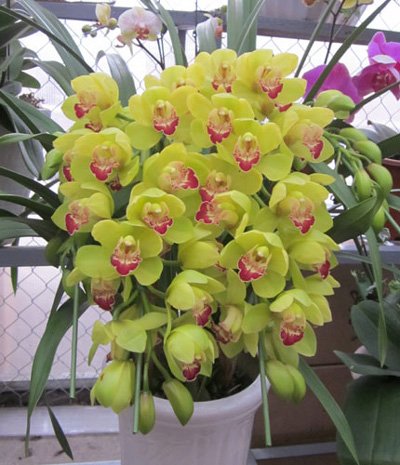 Các chậu địa lan vàng rất hút khách