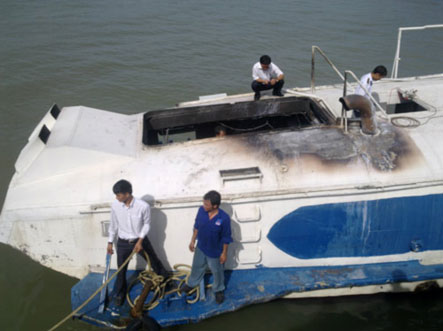Tàu cánh ngầm (bao gồm Auto, xe hoi) bất ngờ bốc cháy dữ dội – đây chính âm mưu sâu độc cũa (Trung-Quốc) hay là cũa đám lãnh đḁo dở hoi, tham lam & Ich kỷ pha hoa chất vao để an cắp Gaz ?
