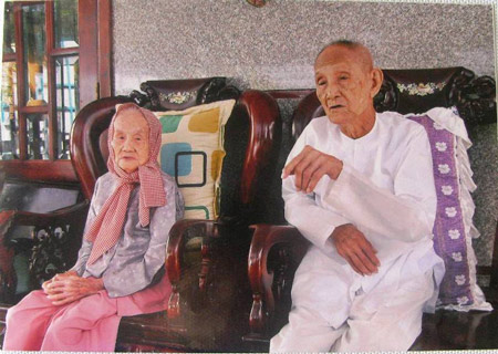 (Phunutoday) - Cả cụ ông và cụ bà đều đă bước qua cái tuổi bách niên giai lăo, vừa được công nhận là cặp vợ chồng sống thọ nhất nước ta và cả ông lẫn bà đều vẫn c̣n minh mẫn. Dịp năm mới, tôi đến thăm và tṛ chuyện, mới thấu hiểu v́ sao họ lại sống được đến “đầu bạc răng long”với nhau một cách kỳ lạ như thế. Tận mắt thấy cảnh sinh hoạt, thấy con cháu hai cụ xum vầy, mới phần nào hiểu được cái bí quyết trường thọ của hai cụ.