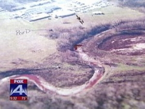 Một người đam mê chơi máy bay mô hình ở bang Texas, Mỹ đã phát hiện thấy một dòng sông máu cách không xa nhà máy sản xuất thịt hộp Texas.